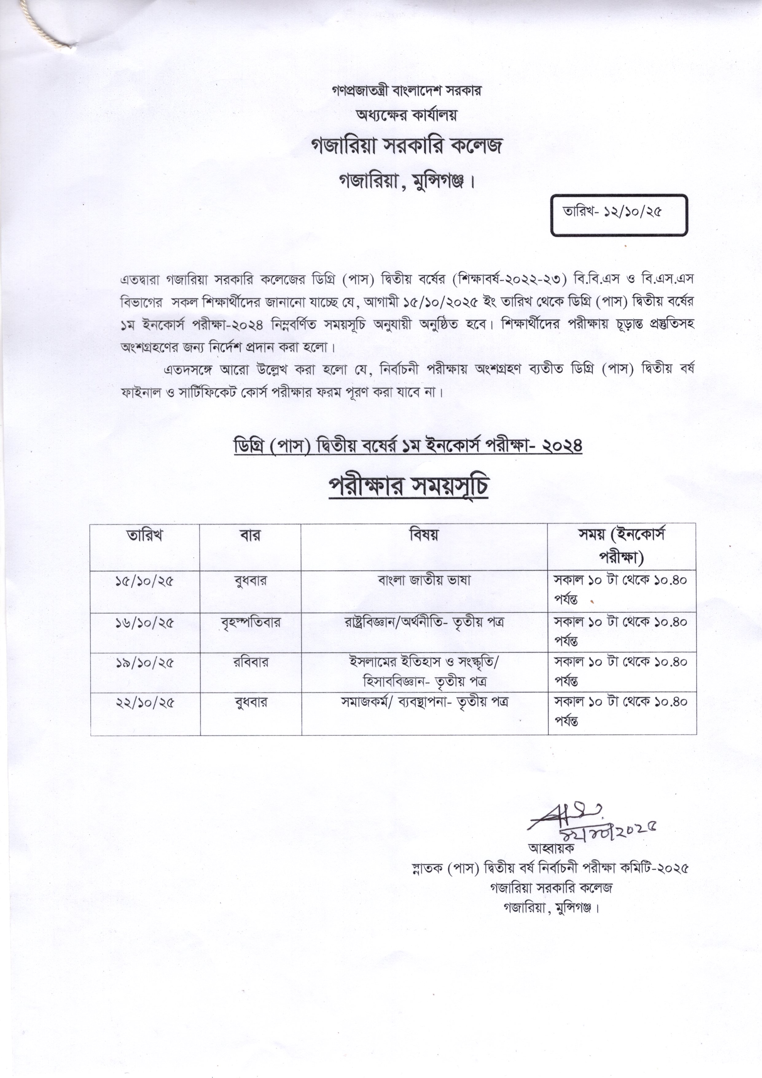 ২০২২-২৩ ডিগ্রি পাস দ্বিতীয় বর্ষের ১ম ইনকোর্স পরীক্ষা-২০২৪ |